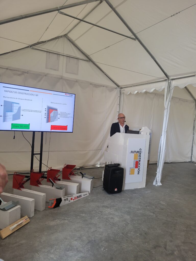 Tras las ponencias, se realizaron dos visitas técnicas que permitieron visualizar in situ los procesos industriales descritos. La primera parada fue en la fábrica de EOSS, donde se mostró el proceso completo de fabricación de baños industrializados. Posteriormente, los asistentes se trasladaron a la fábrica de Baublock, en El Puerto de Santa María, para conocer de cerca sus innovadores sistemas en hormigón celular curado en autoclave. Allí, Rafael Lorente, arquitecto en Baublock, expuso nuevas aproximaciones arquitectónicas orientadas a la sostenibilidad y la eficiencia constructiva.
