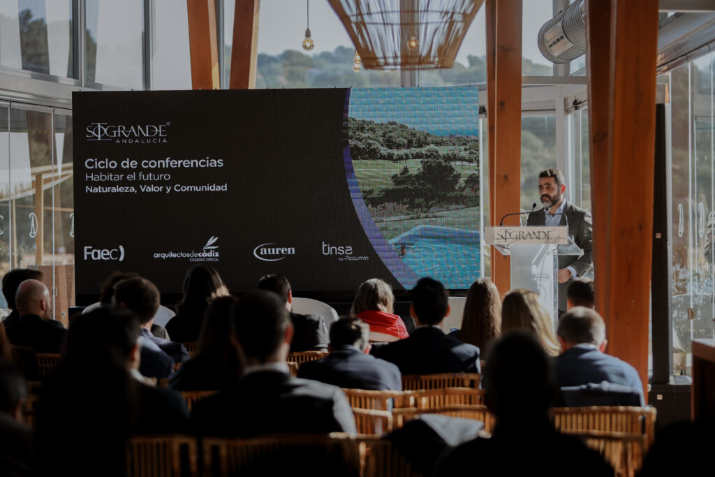 La jornada, organizada por Sotogrande junto a FAEC Cádiz, el COA Cádiz, Auren y Tinsa, se enmarcó dentro del ciclo de conferencias “Habitar el futuro: Naturaleza, Valor y Comunidad”, una iniciativa orientada a promover modelos de desarrollo más equilibrados, respetuosos con el entorno y centrados en las personas.